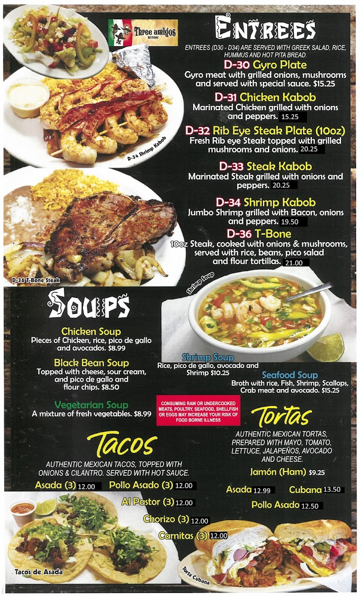 With customer favorites including the famous burgers and unique street tacos, the friendly staff ensures you feel at home. Fresh ingredients and excellent service shine through in every dish, making Three Amigos a must-visit destination!